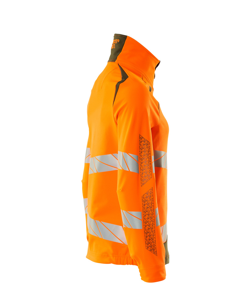 Coupe femme. Fluorescent(e) avec bandes rétroréfléchissantes transversales en biais. Offre une finition hydrofuge. Tissu ultimate stretch de poids léger et résistant. Col montant. Bicolore. Fermeture zippée et rabat coupe-vent à l'intérieur. Compatible avec un porte-badge amovible. Poches latérales zippées. Poches intérieures. Elastiques des deux côtés du bord inférieur. Elastique aux poignets. Ventilation sous les bras. Avec effets d'impression.