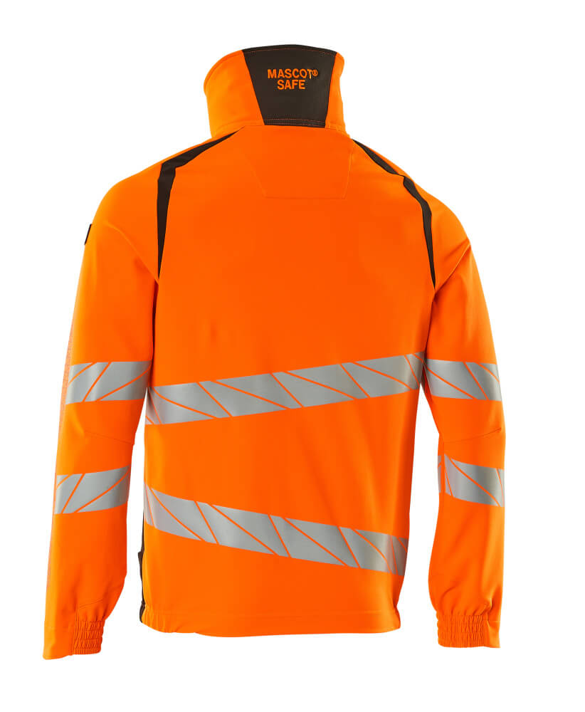 Fluorescent(e) avec bandes rétroréfléchissantes transversales en biais. Offre une finition hydrofuge. Tissu ultimate stretch de poids léger et résistant. Col montant. Bicolore. Fermeture zippée et rabat coupe-vent à l'intérieur. Compatible avec un porte-badge amovible. Poche poitrine zippée. Poches latérales zippées. Poches intérieures. Elastiques des deux côtés du bord inférieur. Elastique aux poignets. Ventilation sous les bras. Avec effets d'impression.