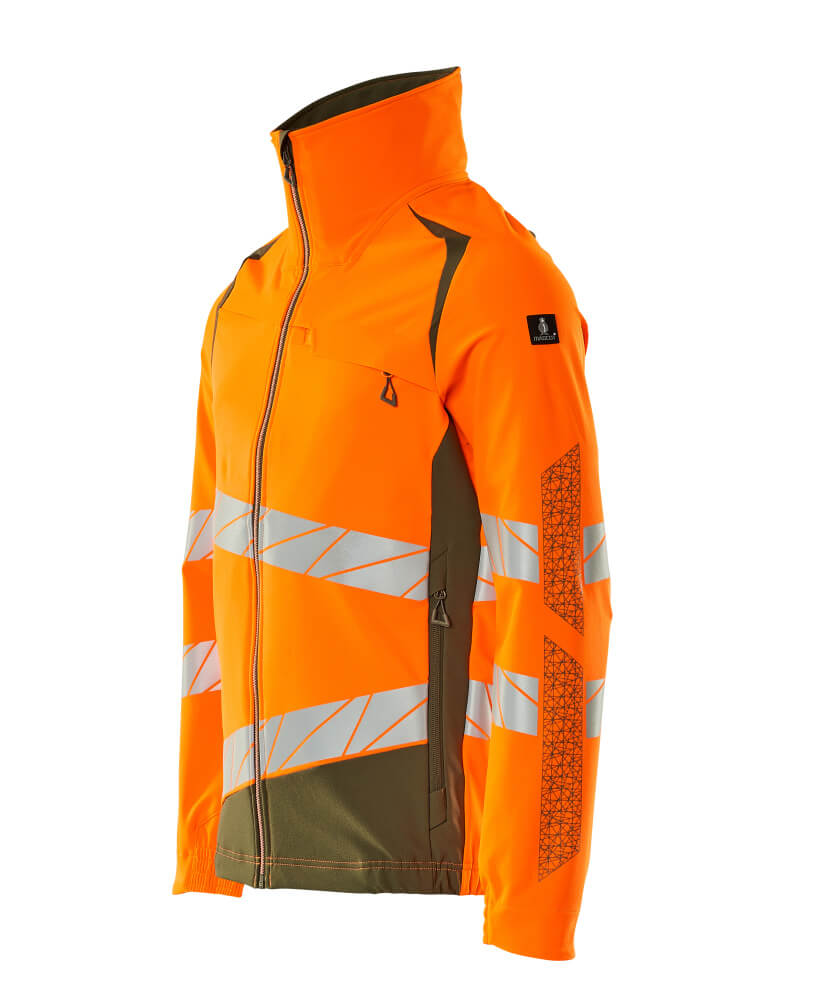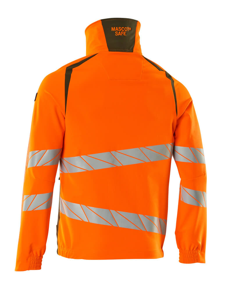 Fluorescent(e) avec bandes rétroréfléchissantes transversales en biais. Offre une finition hydrofuge. Tissu ultimate stretch de poids léger et résistant. Col montant. Bicolore. Fermeture zippée et rabat coupe-vent à l'intérieur. Compatible avec un porte-badge amovible. Poche poitrine zippée. Poches latérales zippées. Poches intérieures. Elastiques des deux côtés du bord inférieur. Elastique aux poignets. Ventilation sous les bras. Avec effets d'impression.