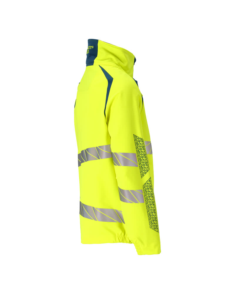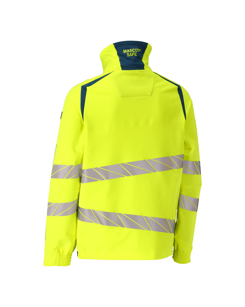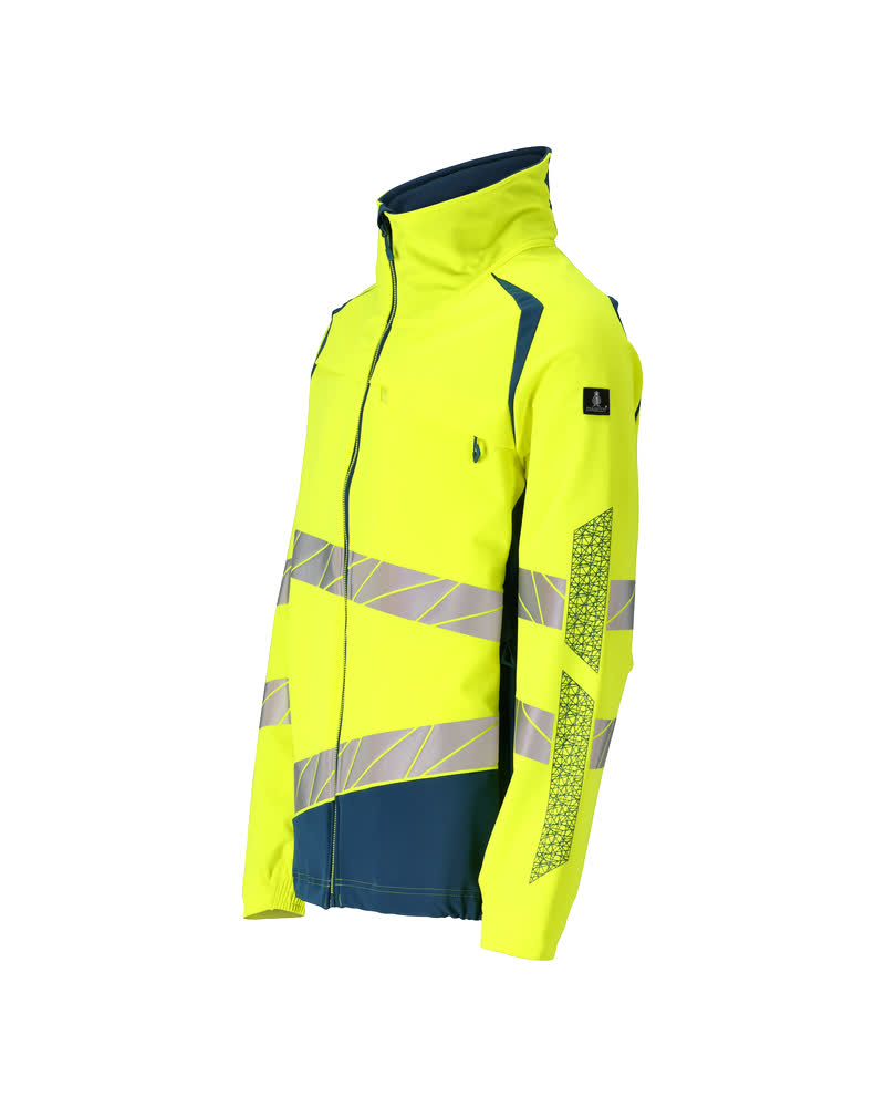 Fluorescent(e) avec bandes rétroréfléchissantes transversales en biais. Offre une finition hydrofuge. Tissu ultimate stretch de poids léger et résistant. Col montant. Bicolore. Fermeture zippée et rabat coupe-vent à l'intérieur. Compatible avec un porte-badge amovible. Poche poitrine zippée. Poches latérales zippées. Poches intérieures. Elastiques des deux côtés du bord inférieur. Elastique aux poignets. Ventilation sous les bras. Avec effets d'impression.