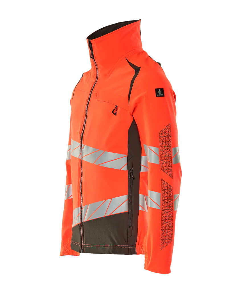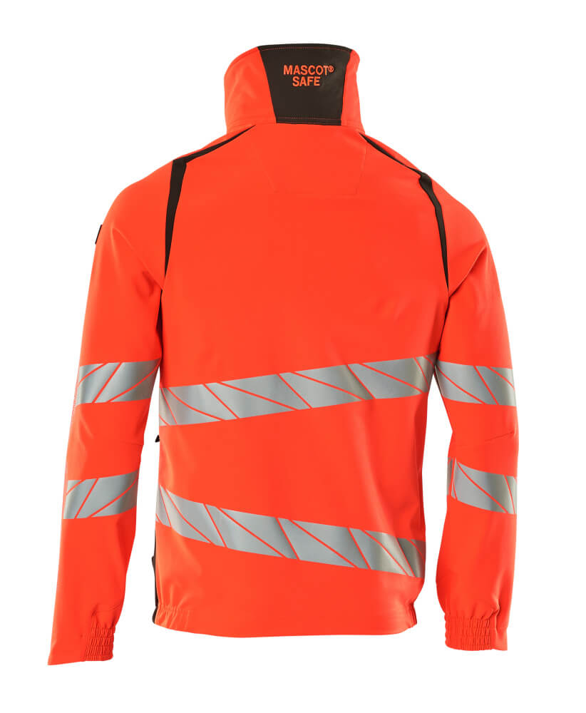 Fluorescent(e) avec bandes rétroréfléchissantes transversales en biais. Offre une finition hydrofuge. Tissu ultimate stretch de poids léger et résistant. Col montant. Bicolore. Fermeture zippée et rabat coupe-vent à l'intérieur. Compatible avec un porte-badge amovible. Poche poitrine zippée. Poches latérales zippées. Poches intérieures. Elastiques des deux côtés du bord inférieur. Elastique aux poignets. Ventilation sous les bras. Avec effets d'impression.