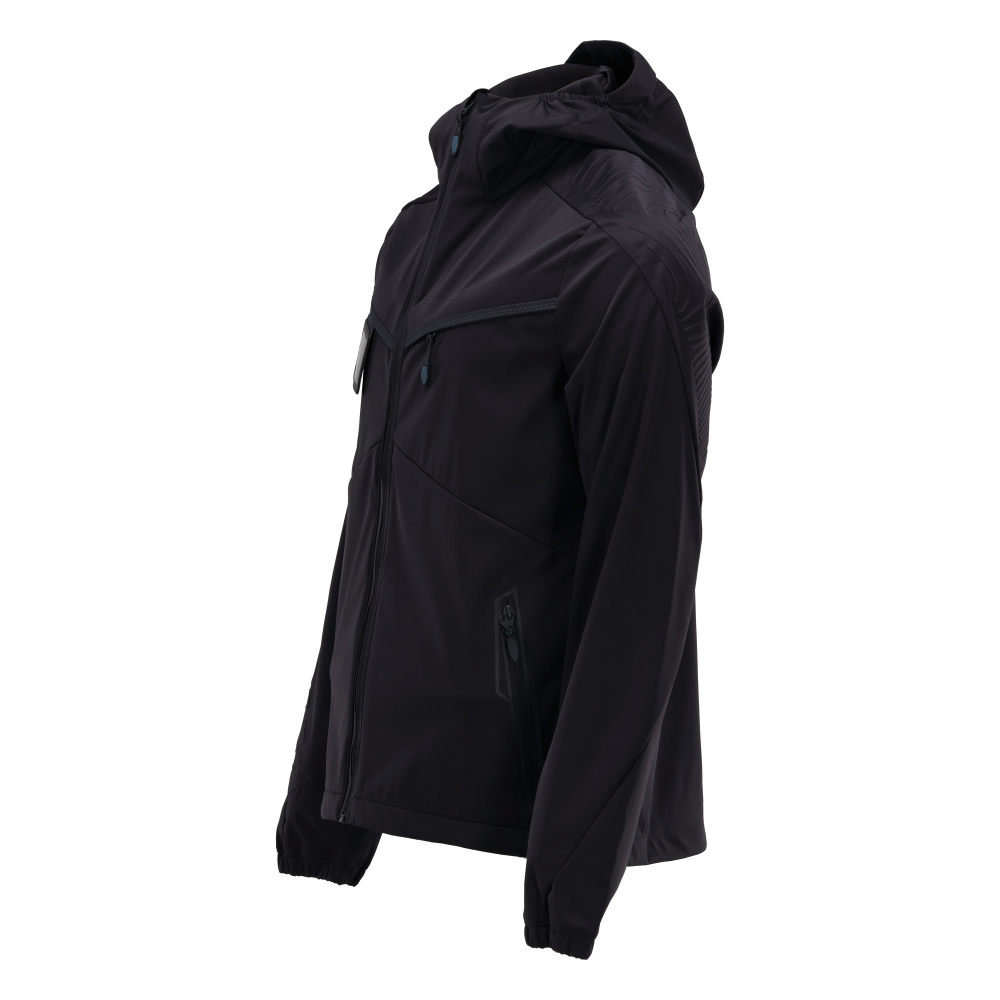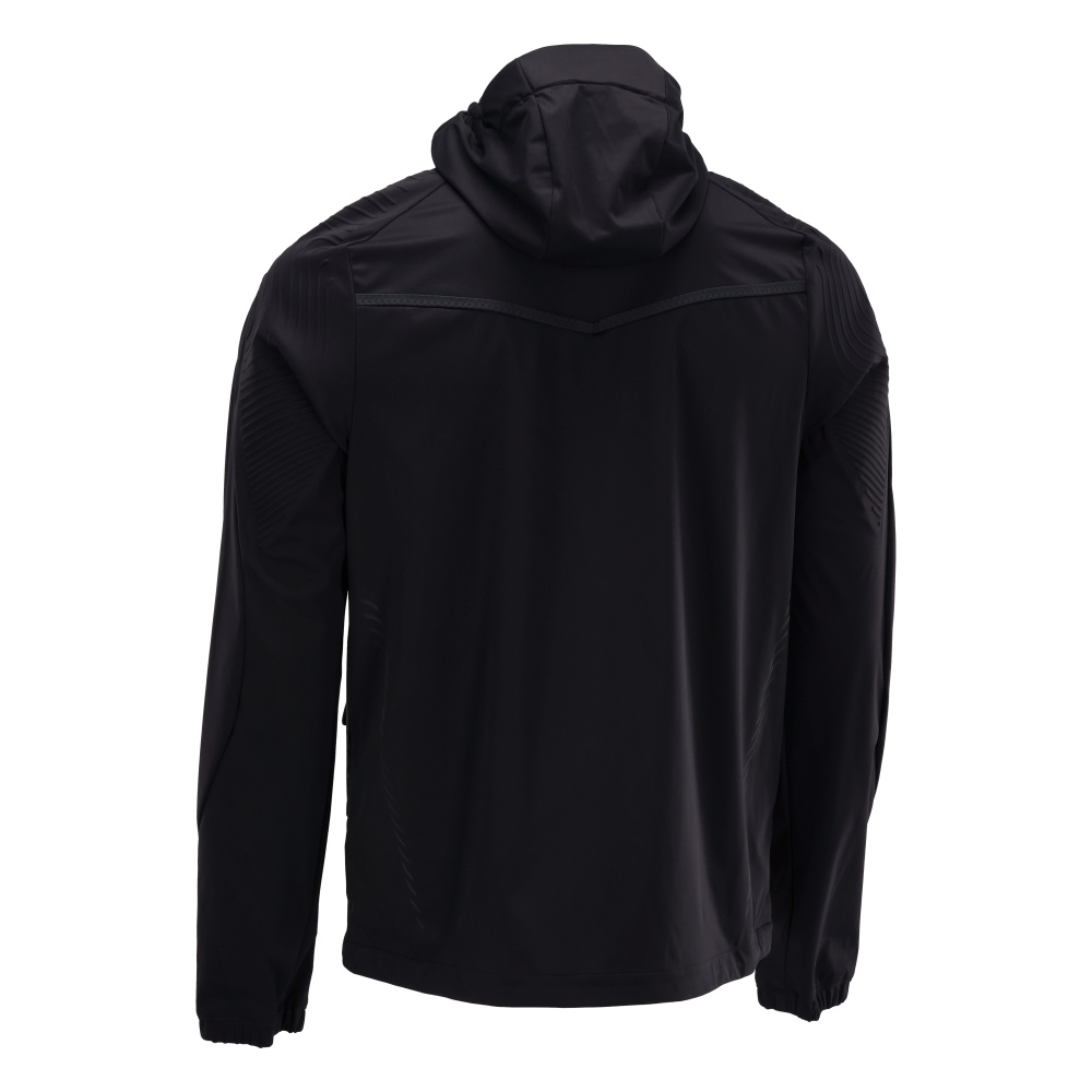 Tissu ultimate stretch de poids léger. Coupe-vent, hydrofuge et permettant au corps de respirer. Fermeture zippée. Capuche. Poche intérieure. Poche poitrine zippée. Poches latérales zippées. Doublure filet sur certaines parties du produit. Taille ajustable à l'aide d'un cordon élastique de serrage. Manches ergonomiques pour une grande liberté de mouvement. Poignets avec élastique. Porte-badge amovible. Effets rétroréfléchissants.