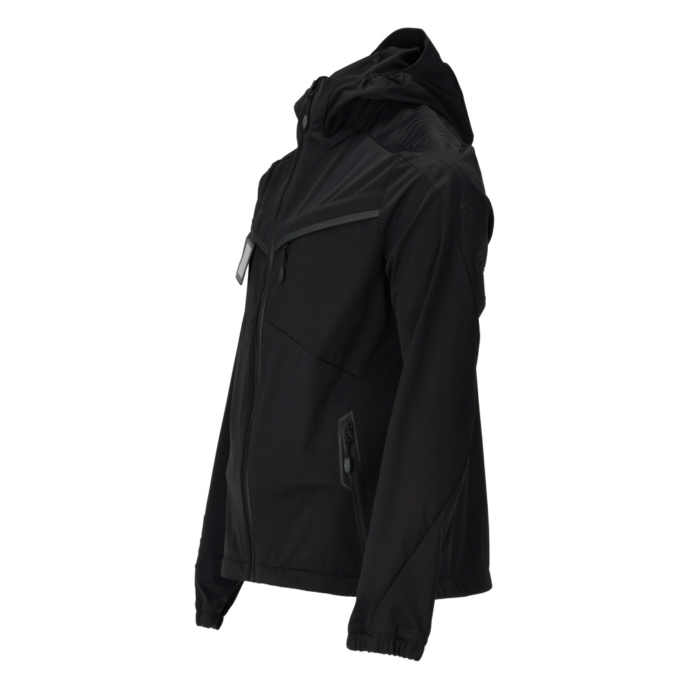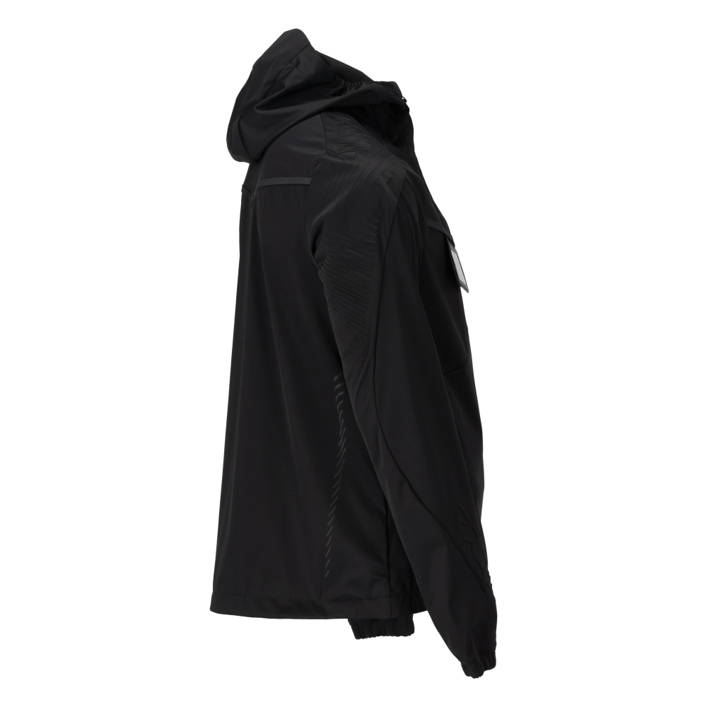 Tissu ultimate stretch de poids léger. Coupe-vent, hydrofuge et permettant au corps de respirer. Fermeture zippée. Capuche. Poche intérieure. Poche poitrine zippée. Poches latérales zippées. Doublure filet sur certaines parties du produit. Taille ajustable à l'aide d'un cordon élastique de serrage. Manches ergonomiques pour une grande liberté de mouvement. Poignets avec élastique. Porte-badge amovible. Effets rétroréfléchissants.