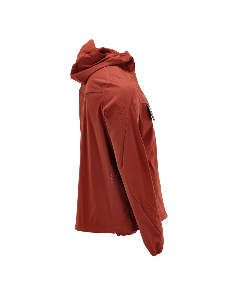 Tissu ultimate stretch de poids léger. Coupe-vent, hydrofuge et permettant au corps de respirer. Fermeture zippée. Capuche. Poche intérieure. Poche poitrine zippée. Poches latérales zippées. Doublure filet sur certaines parties du produit. Taille ajustable à l'aide d'un cordon élastique de serrage. Manches ergonomiques pour une grande liberté de mouvement. Poignets avec élastique. Porte-badge amovible. Effets rétroréfléchissants.