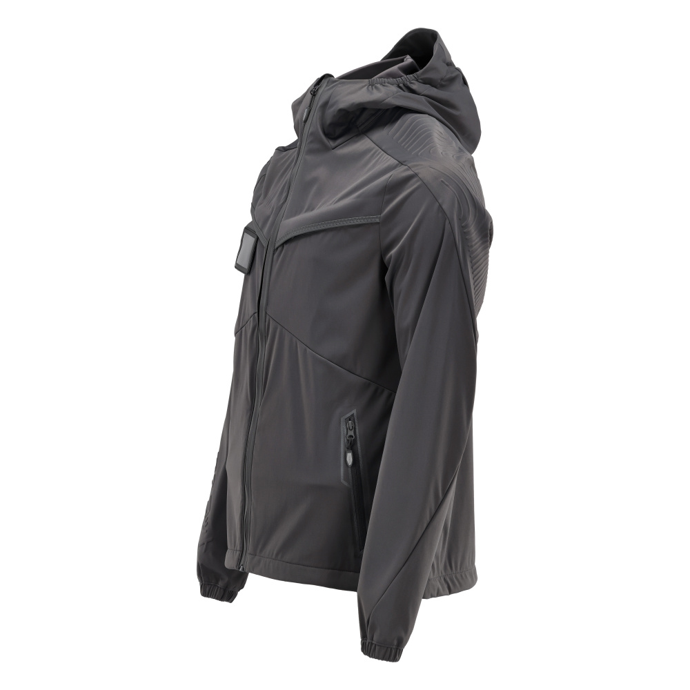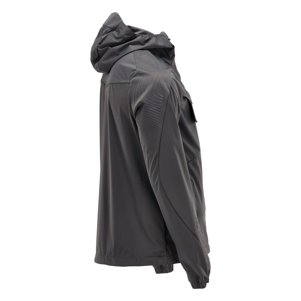 Tissu ultimate stretch de poids léger. Coupe-vent, hydrofuge et permettant au corps de respirer. Fermeture zippée. Capuche. Poche intérieure. Poche poitrine zippée. Poches latérales zippées. Doublure filet sur certaines parties du produit. Taille ajustable à l'aide d'un cordon élastique de serrage. Manches ergonomiques pour une grande liberté de mouvement. Poignets avec élastique. Porte-badge amovible. Effets rétroréfléchissants.
