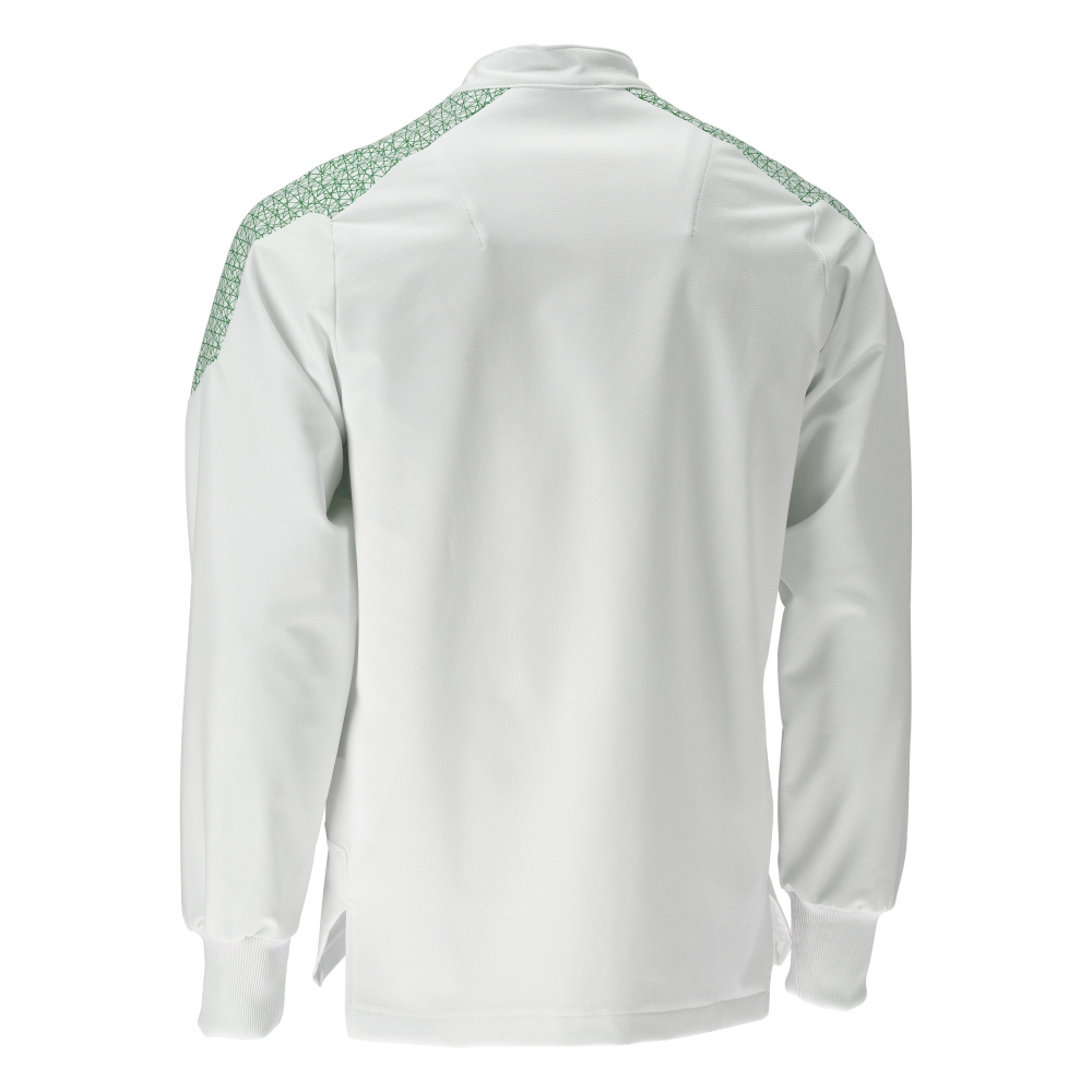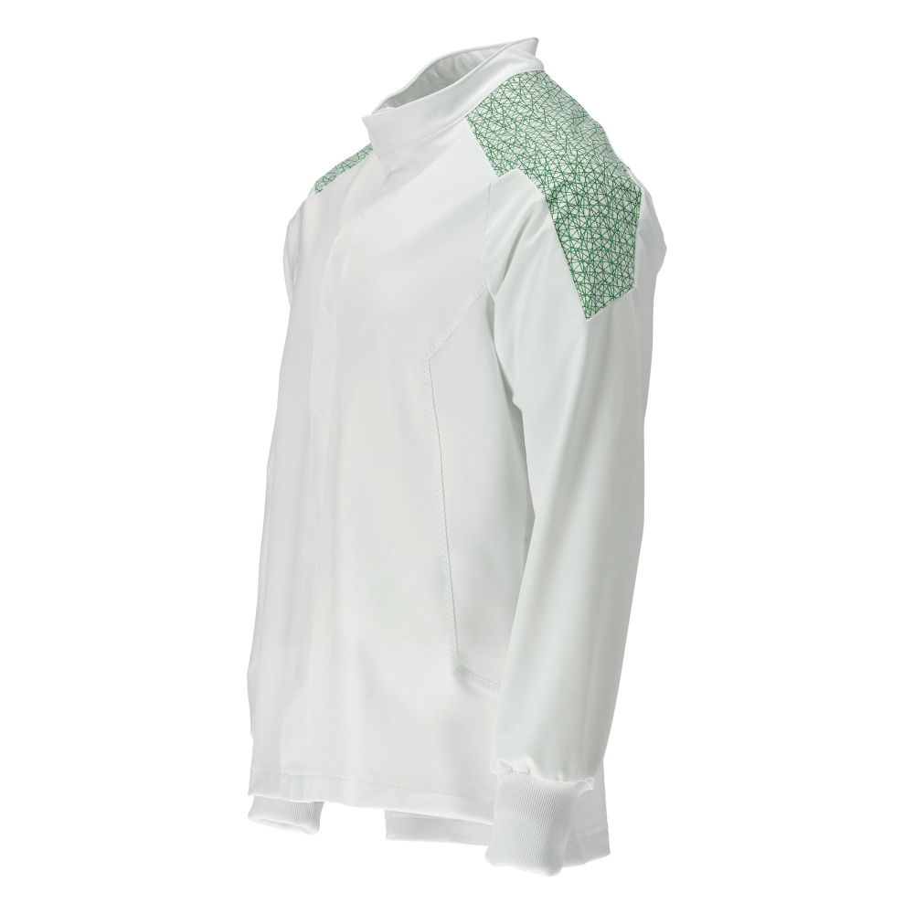 Tissu ultimate stretch de poids léger et résistant. Séchage rapide. Poignets en maille côtelée. Fentes sur les côtés. Fermetures avec boutons-pression non visibles/recouverts. Boutons-pression métalliques. Emplacements pour marquage du vêtement, puce HF et puce UHF. Marquage de couleur pour chaque taille. Le produit est résistant au lavage industriel.