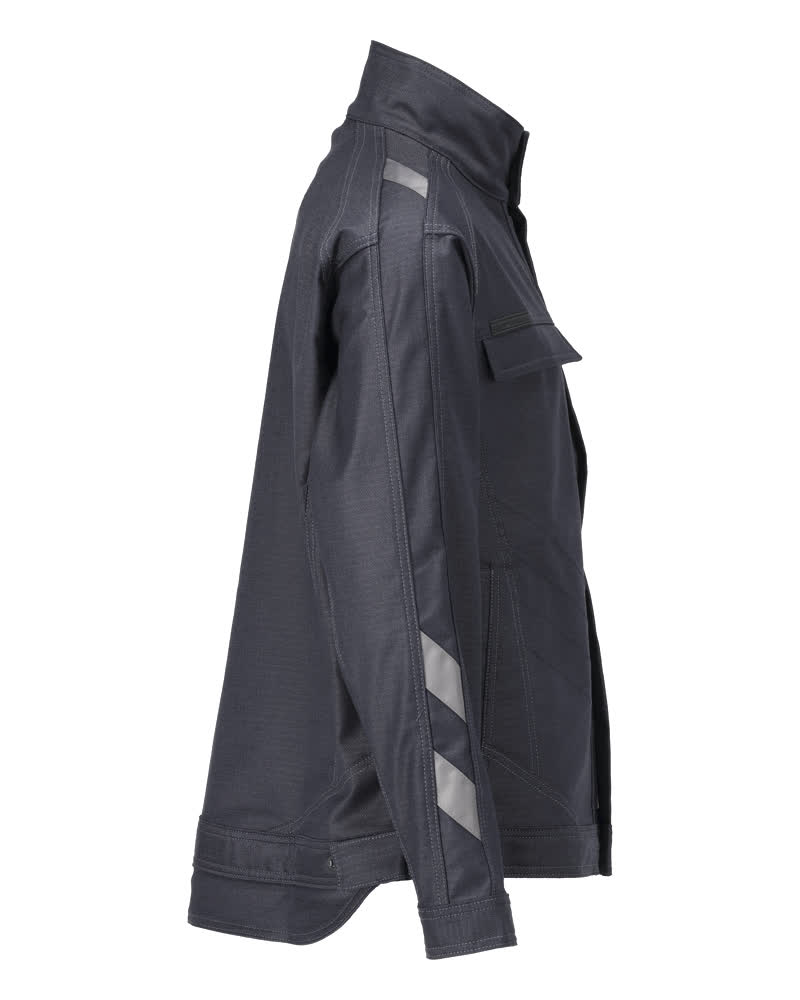 Coutures triples sur les manches et les côtés. Col montant. Fermeture zippée avec rabat coupe vent et boutons-pression non visibles/recouverts. Dos long. Poches poitrine avec fermeture bouton-pression caché sous rabat. Accès aisé à la poche téléphone dans la poche poitrine. Poches latérales. Anneau en D. Manches ergonomiques pour une grande liberté de mouvement. Poches intérieures. Ajustable sur les hanches à l'aide de boutons-pression. Poignets ajustables à l'aide de boutons-pression. Coutures contrastées. Effets rétroréfléchissants.