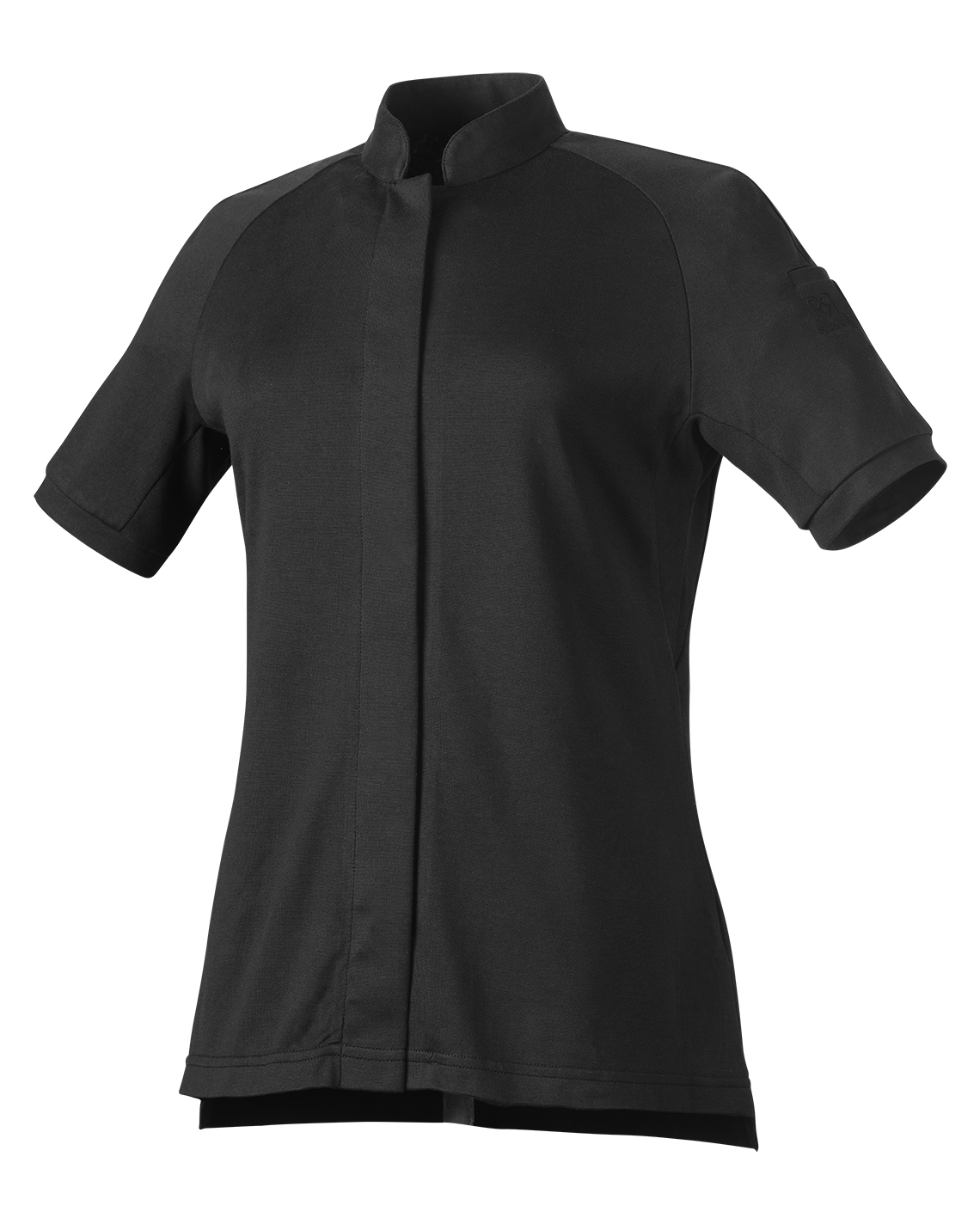 Modèle entièrement en maille pour un maximum de confort Col Mao Boutons pression cachés Empiècements en maille respirante sous les bras Manches raglan pour plus d'aisance de mouvement Poche stylo passepoilée sur manche gauche