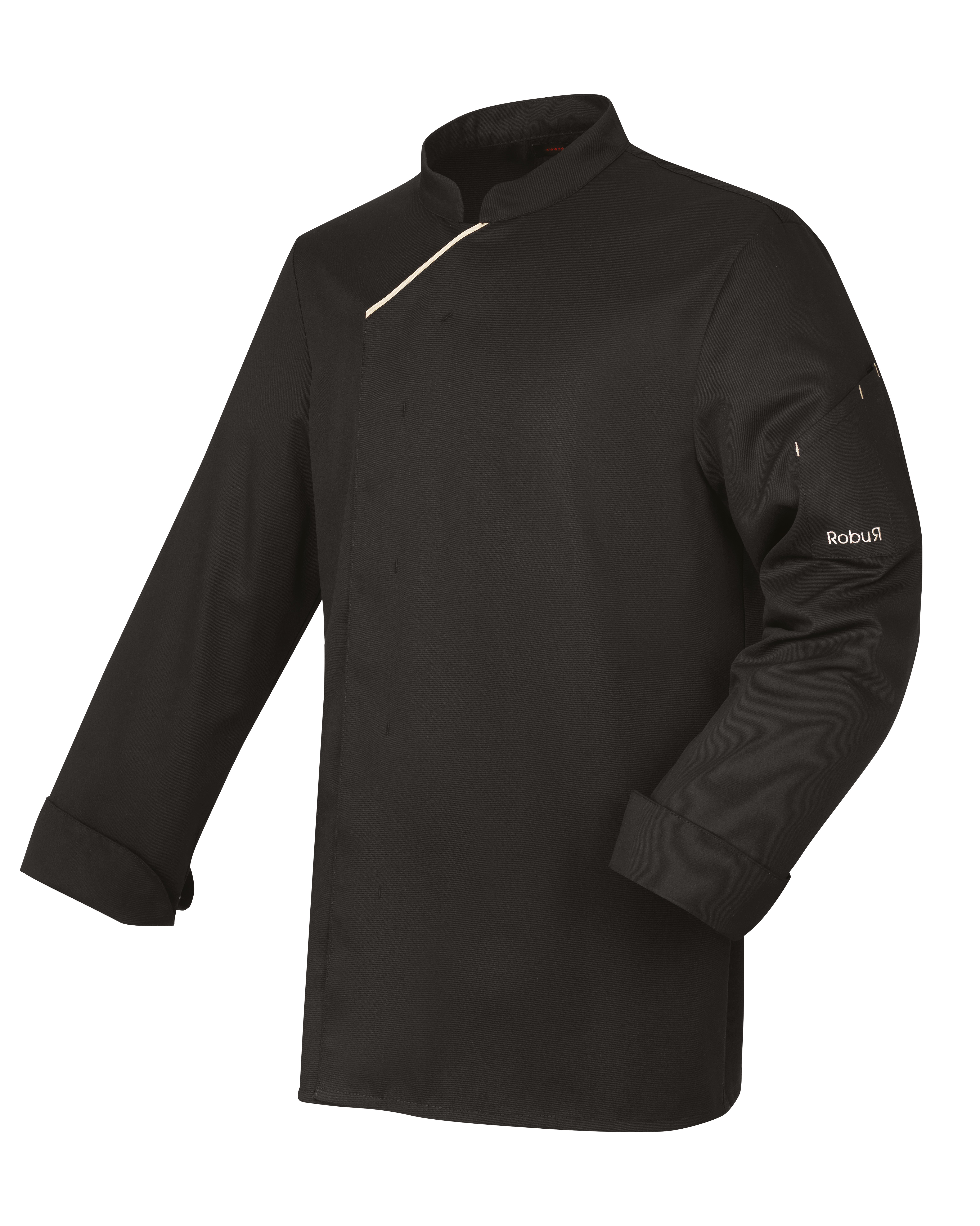 Col Mao Boutons pression cachés Liseré écru en haut du devant gauche Poche stylo plaquée sur manche gauche Points d’arrêts écru sur la poche stylo